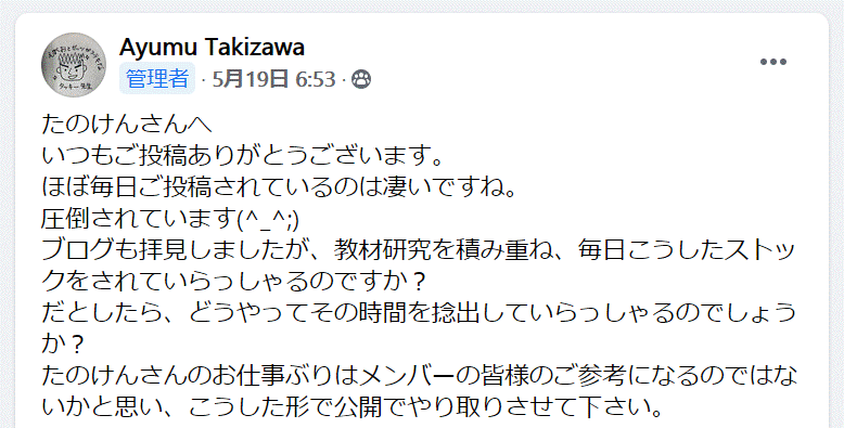 また、上記の2つ以外にも、OJTで紹介した色々な小技であったり、どのように授業準備や教材研究、そしてそのストックをしているのか、そしてまだ誰にも紹介していないような仕事の効率を上げるための工夫も、いくつかあるので、これから色々紹介していきますね^^