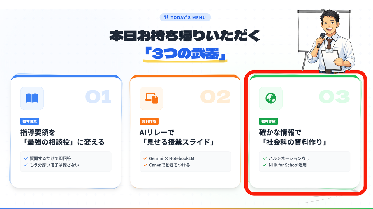 **「NotebookLMで教師の仕事を爆速化する活用術3選」**