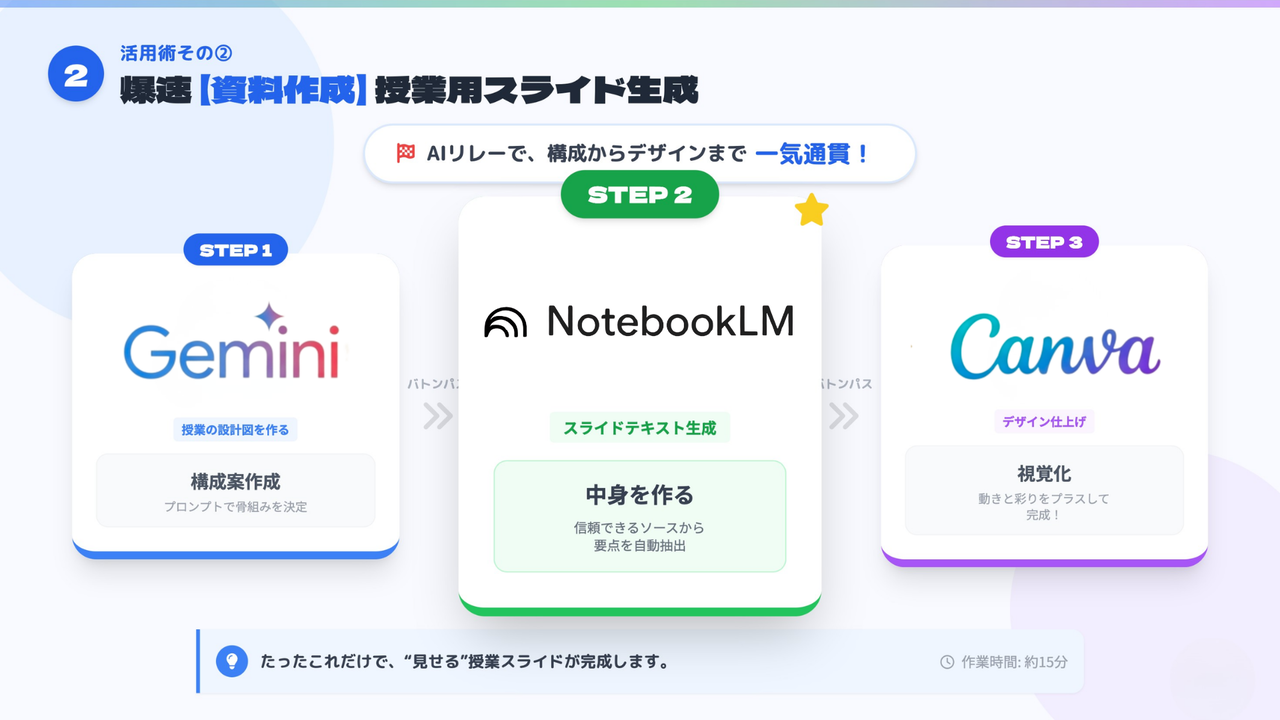 # ② 爆速【資料作成】AIリレーで「見せる授業スライド」作成